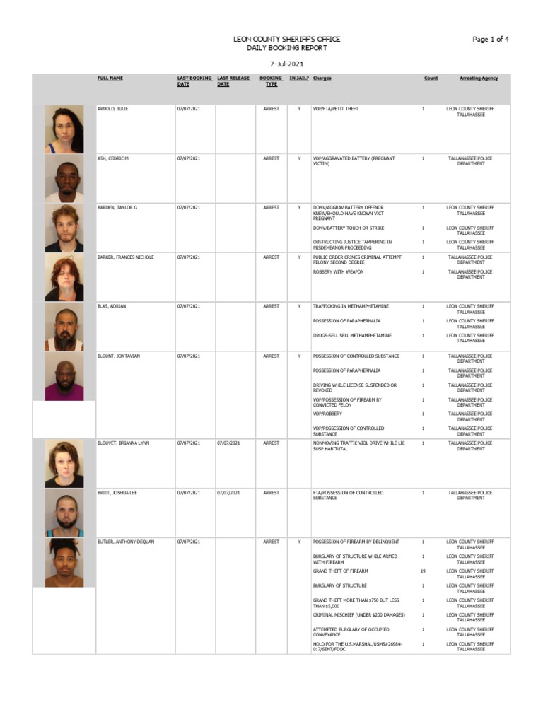 Leon County Booking Report. Home Unlabelled Tallahassee Booking Report October 2021 - Leon County Booking Report Oct 17 2021 Pdf Justice Crime Violence You can view the jul 22 2021 leon county booking report. Leon County Booking Report.