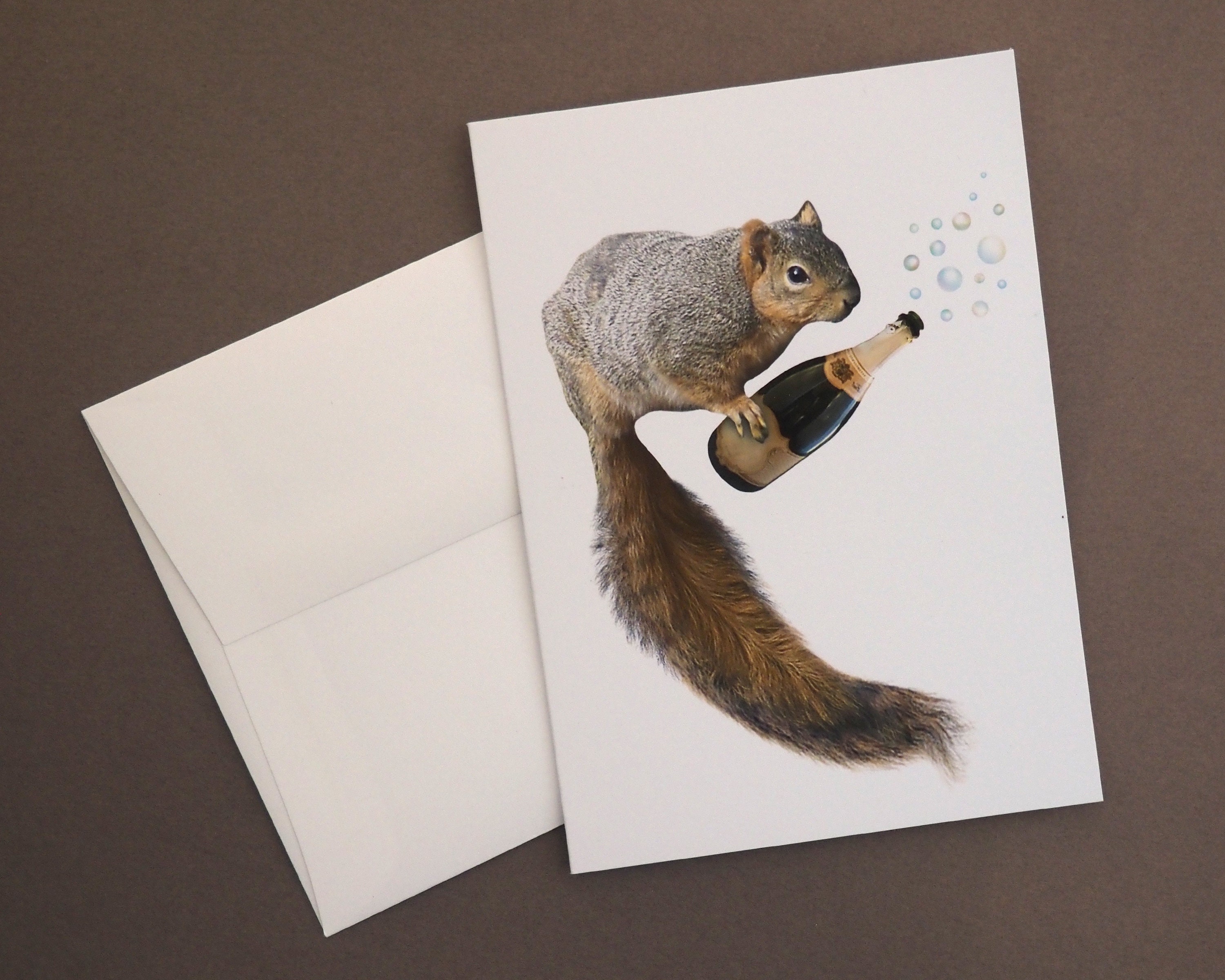Squirrel With Bubbly Champagne Card Congratulations Or Party Etsy